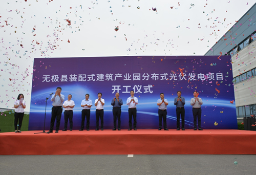 | 5月19日上午,由市政建設總公司所屬能源投資發(fā)展有限公司投資建設的無極縣裝配式建筑產(chǎn)業(yè)園分布式光伏發(fā)電項目開工建設。市國資委黨委委員、副主任楊劍,城發(fā)投集團黨委委員、副總經(jīng)理李宗志,市政建設總公司總經(jīng)理馬瑞山,市住建集團董事長張瑞彬等領導及施工單位、監(jiān)理單位代表出席開工儀式。李宗志同志宣布項目開工。